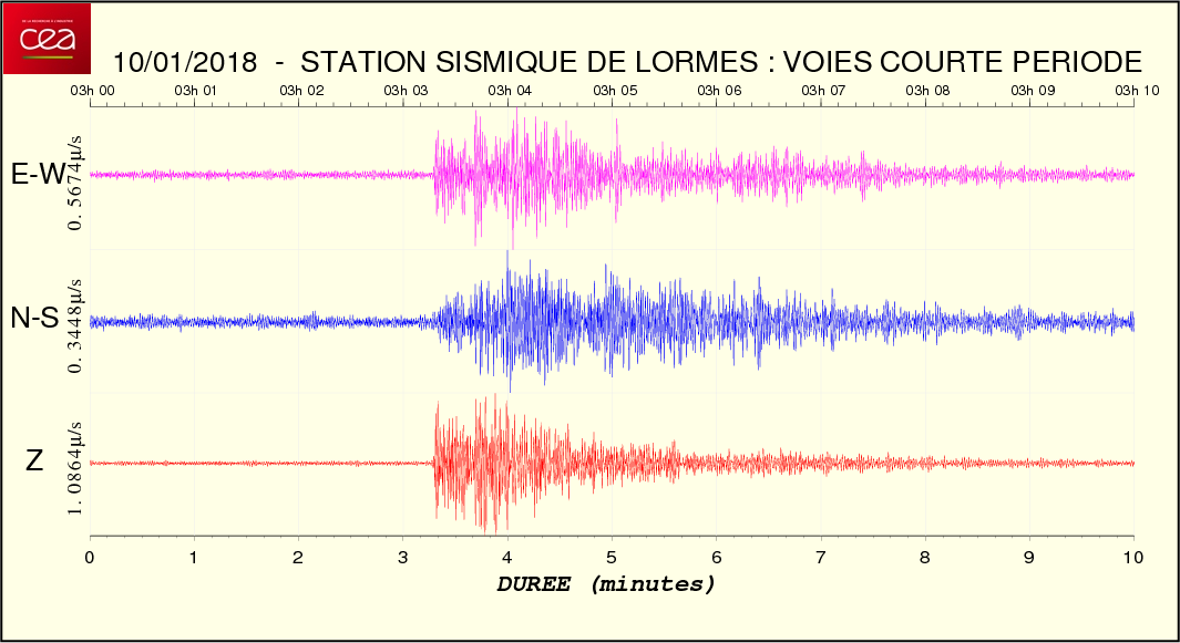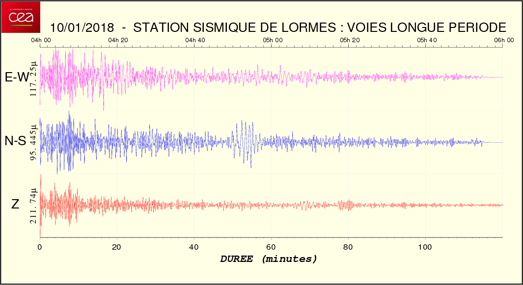 Fichier de la courbe brute au format SAC Fichier de la courbe brute au format MSEED L'enregistrement de la station du CEA à Lormes