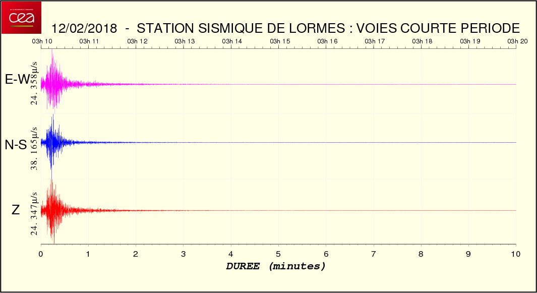 Fichier de la courbe brute au format SAC Fichier de la courbe brute au format MSEED L'enregistrement de la station du CEA à Lormes