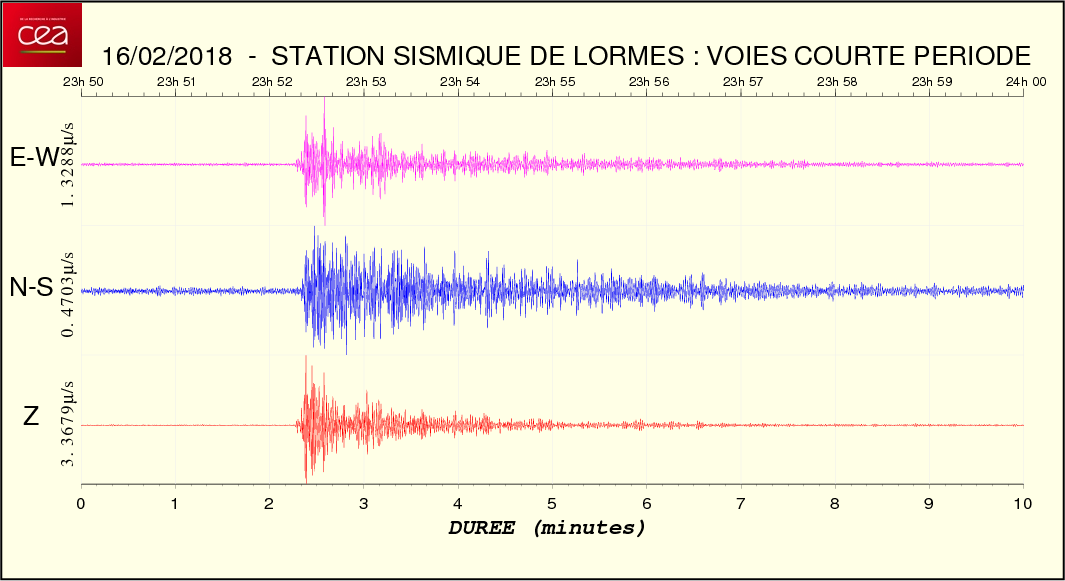 Fichier de la courbe brute au format SAC Fichier de la courbe brute au format MSEED L'enregistrement de la station du CEA à Lormes
