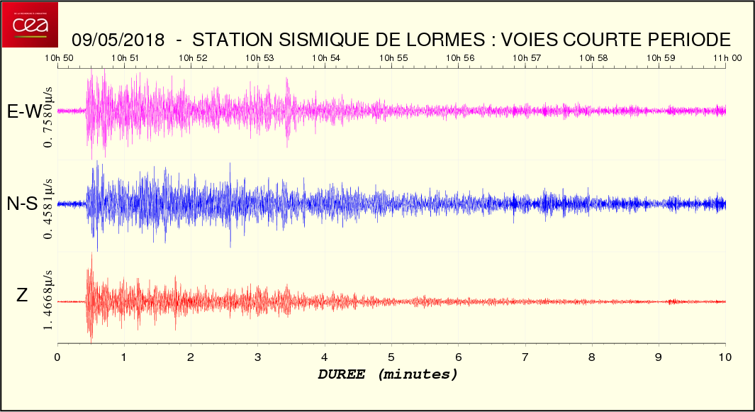 Fichier de la courbe brute au format SAC Fichier de la courbe brute au format MSEED L'enregistrement de la station du CEA à Lormes