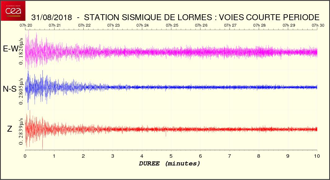 Fichier de la courbe brute au format MSEED L'enregistrement de la station du CEA à Lormes