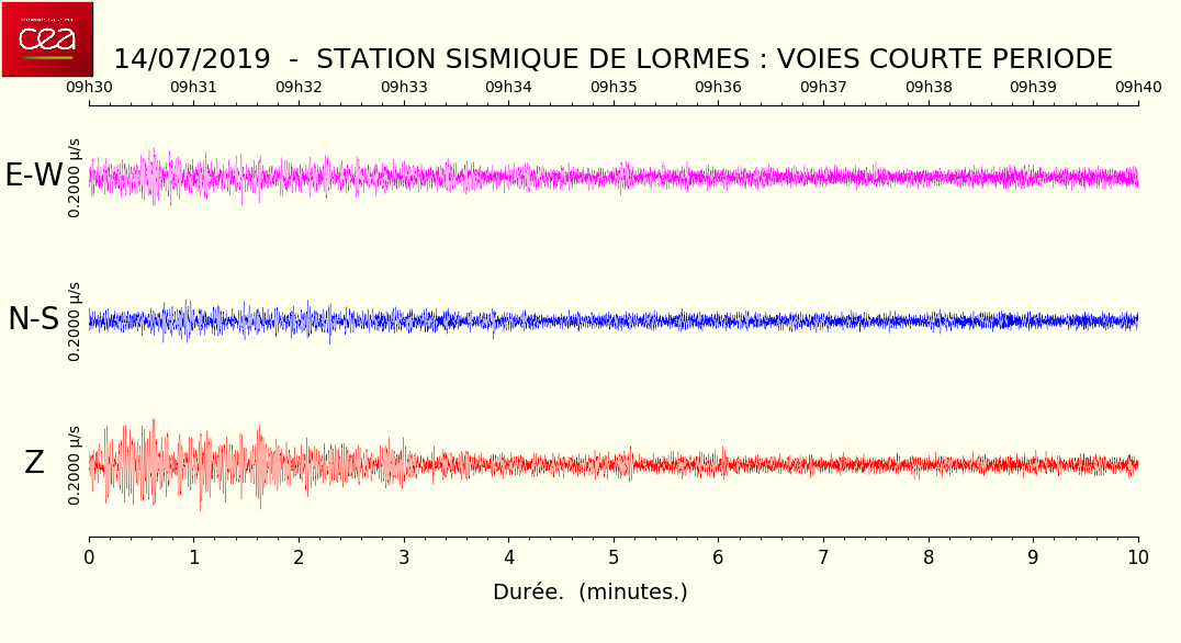 Fichier de la courbe brute au format SAC Fichier de la courbe brute au format MSEED L'enregistrement de la station du CEA à Lormes