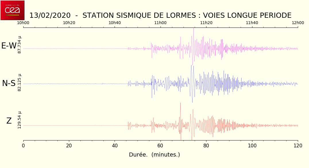 Fichier de la courbe brute au format SAC Fichier de la courbe brute au format MSEED L'enregistrement de la station du CEA à Lormes