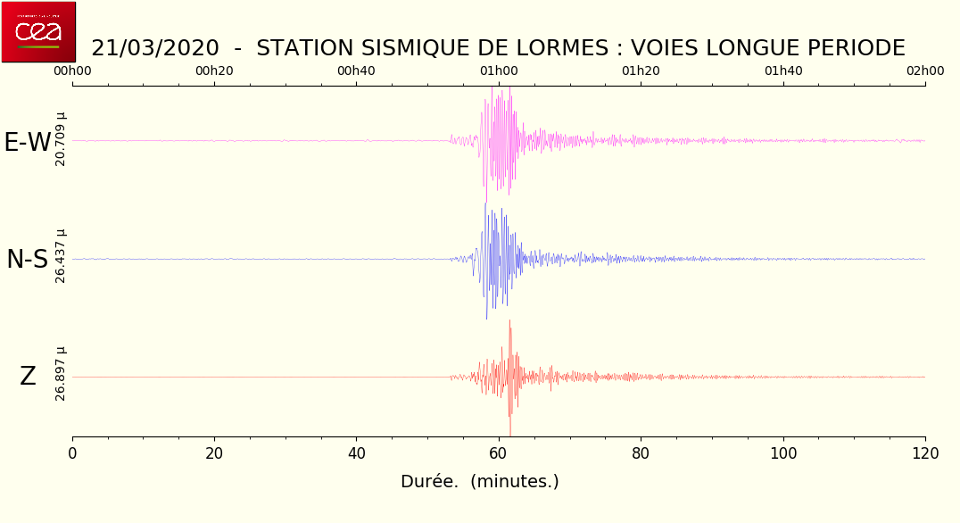 Fichier de la courbe brute au format SAC Fichier de la courbe brute au format MSEED L'enregistrement de la station du CEA à Lormes