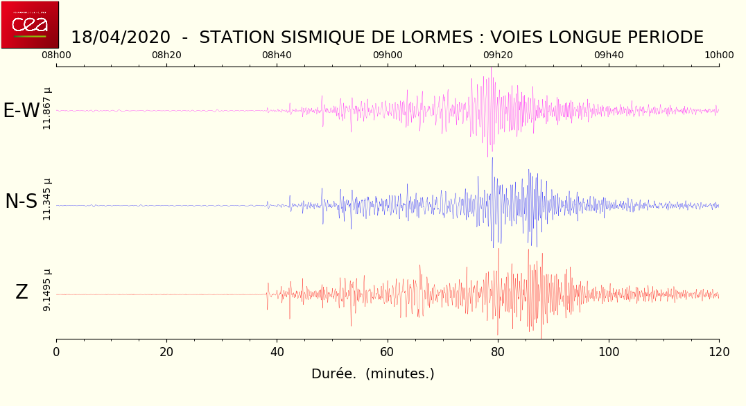 Fichier de la courbe brute au format SAC Fichier de la courbe brute au format MSEED L'enregistrement de la station du CEA à Lormes